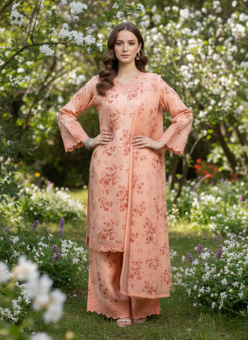CODE: PEACH FLOWERS SILK PRET