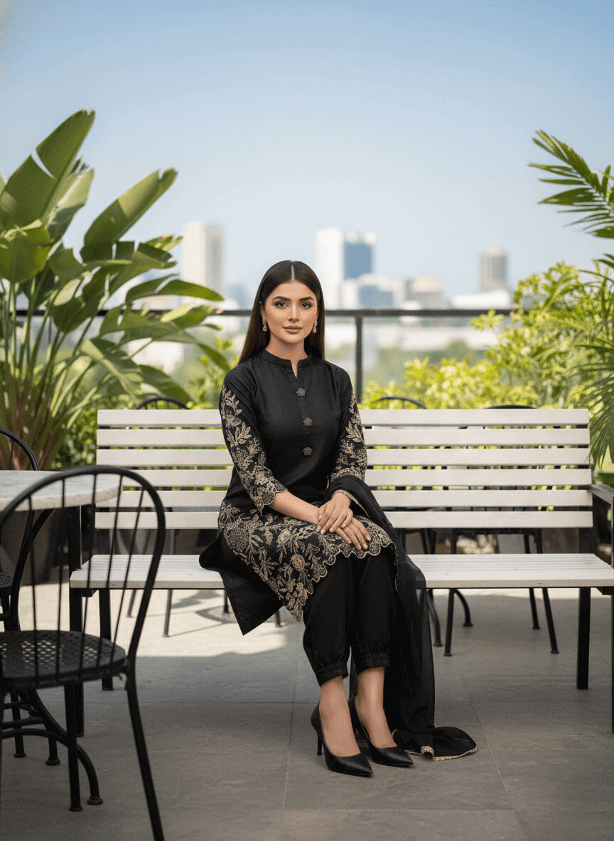 CODE: VINTAGE BLACK 3D SILK PRET